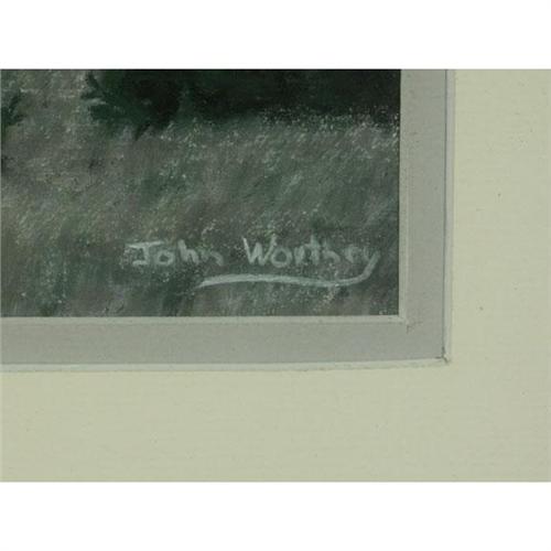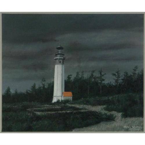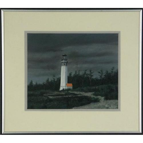 PASTEL ON BOARD 10'' X 12'', John Worthey, Seattle, WA. Lighthouse in a Wooded Landscape. Signed lower right. Double matted and placed in a silver metal frame. More info. in the white binder.