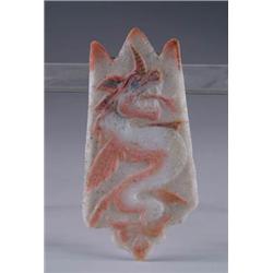 Lot 630 PATE DE VERRE DRAGON PLAQUE Dragon design in relief, pink on mottled white glass. Henry Cros. SIZE: 8” t. CONDITION: Very good to excellent. 5-70247
