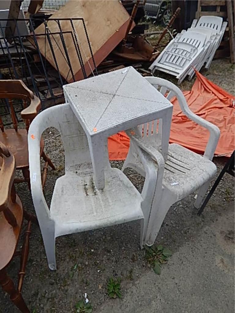 PATIO CHAIRS (2) AND SIDE TABLE = 3 PC TOTAL