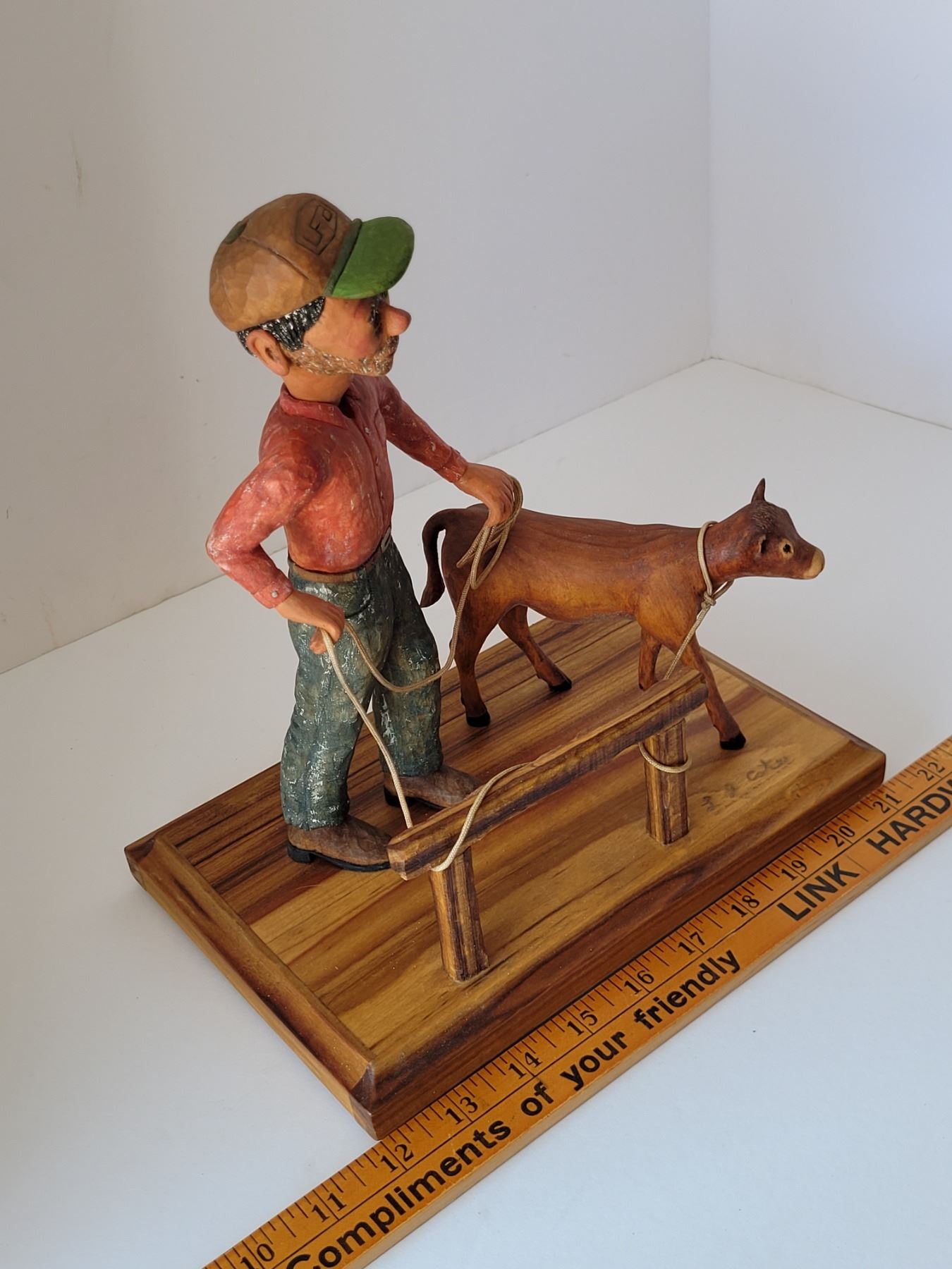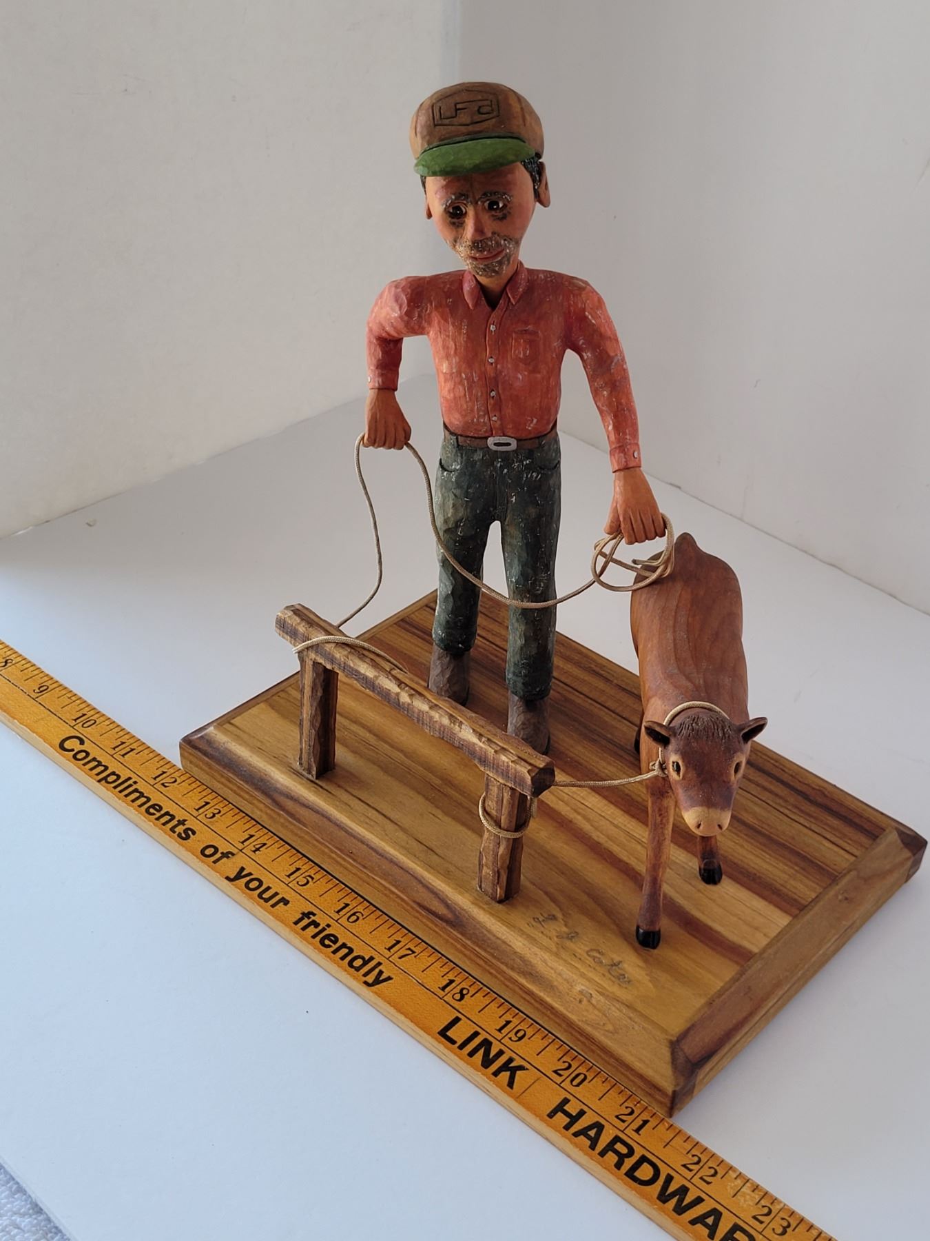 PATIO DECOR HAND MADE MAN & YOUNG BULL