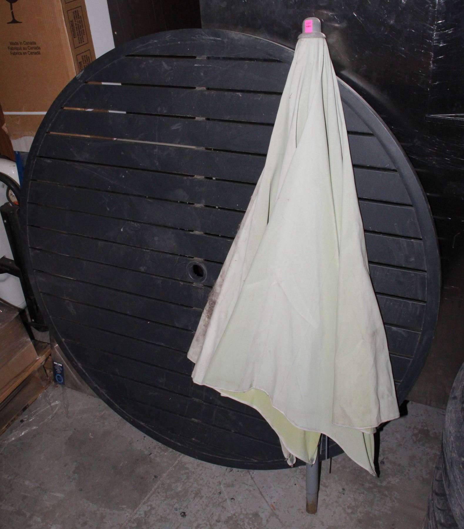 MISSING LEGS AND POLE EXTENSION. SOLD AS IS. APPROX 48" DIAMETER