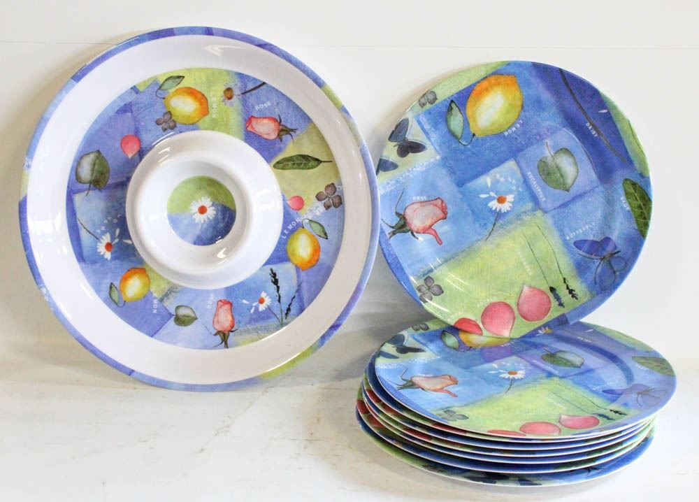 PATIOWARE CHIP/DIP PLATTER & 8 SERVING PLATES 11"