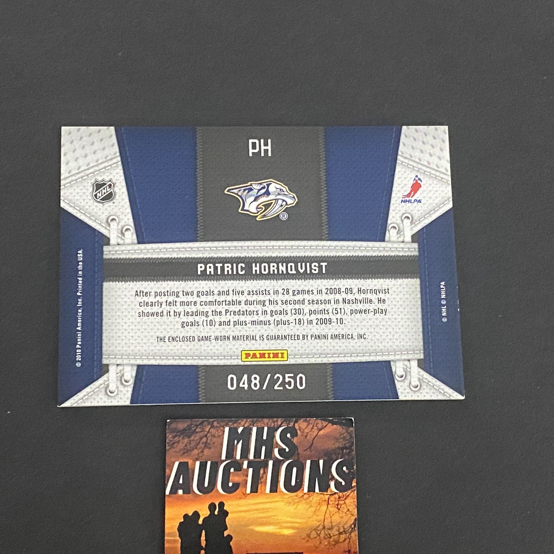 PATRIC HORNQVIST NASHVILLE PREDATORS JERSEY CARD #048 OF 250 MADE!