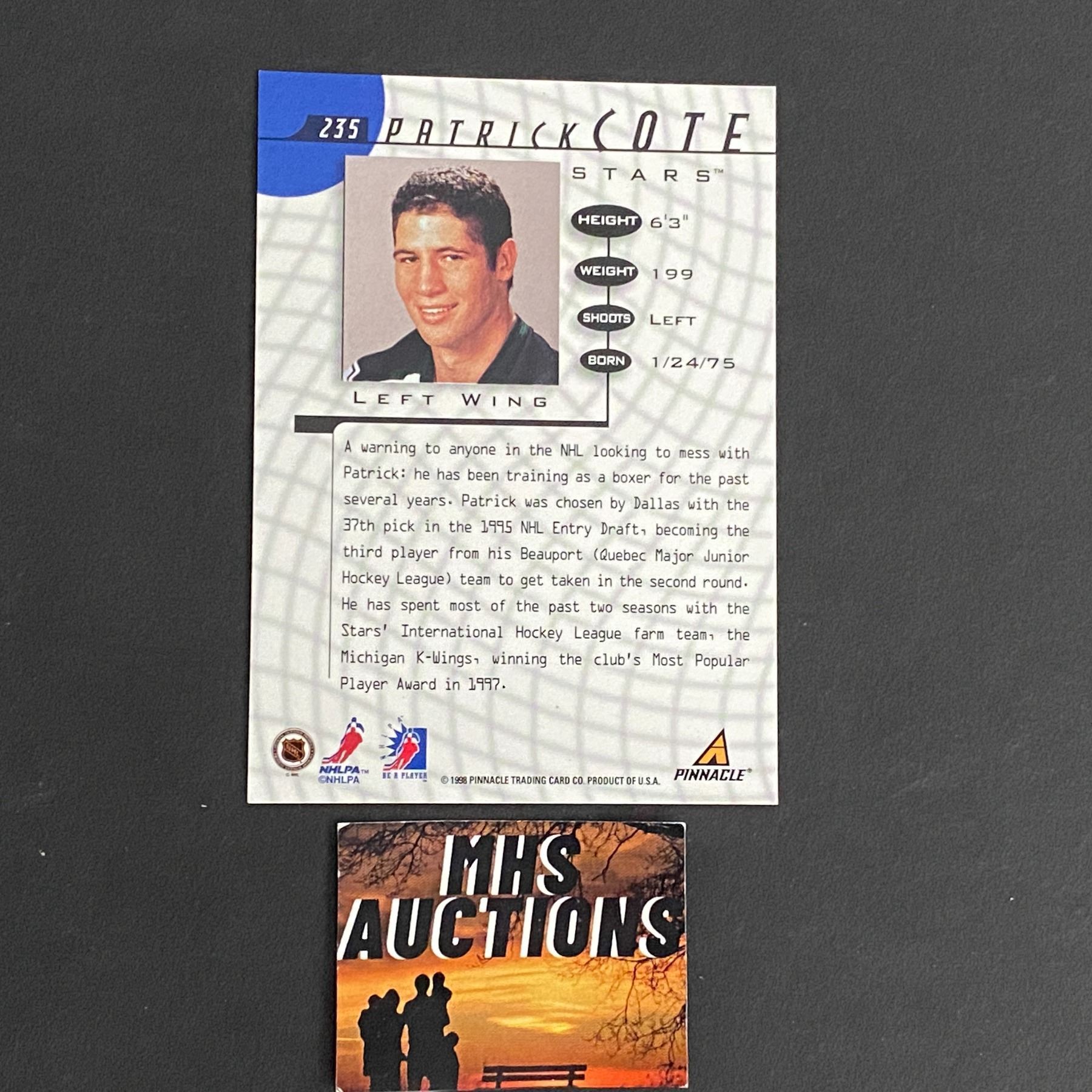 PATRICK COTE 1998 PINNACLE BE A PLAYER AUTOGRAPHED HOCKEY CARD