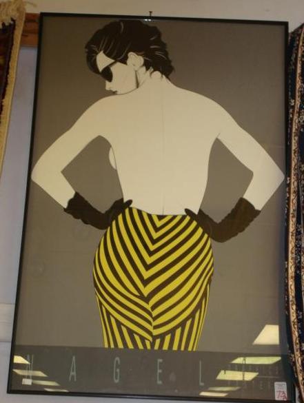 PATRICK NAGEL Framed Female Print: Back View of Sexy Lady in Narrow Metal Black Frame. 24" X 36". (80-160)