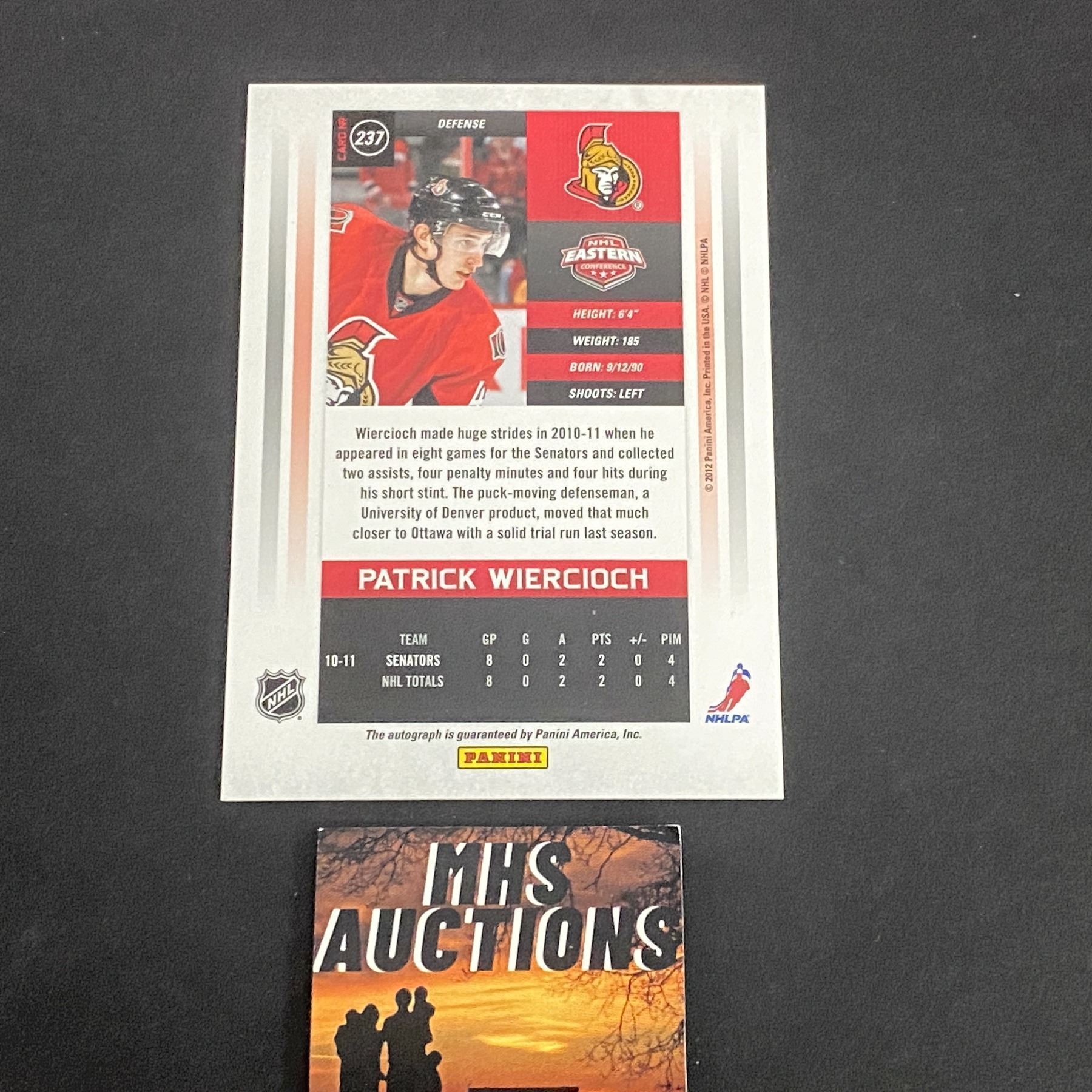 PATRICK WIERCIOCH AUTOGRAPHED 2011/12 PANINI HOCKEY CARD #647 OF 800 MADE