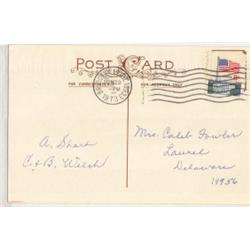PATRIOTIC INDEPENCE DAY POSTCARD. Depicts youth draped in American flag with sword. Titled "The Day we celebrate-1776". 1973 postmark.