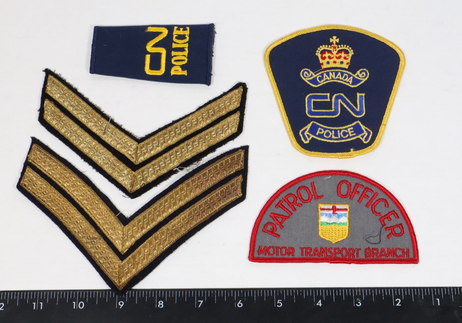 CANADIAN POLICE LAW ENFORCEMENT PATCH CREST SOLD WITH PAIR MILITARY/POLICE CHEVRON RANK INSIGNIA AND CN POLICE PATCH AND SHOULDER INSIGNIA CANADIAN POLICE LAW ENFORCEMENT PATCH CREST