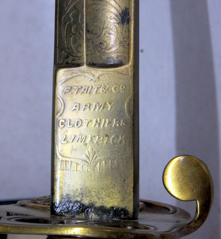 MADE BY P. TAIT & CO. ARMY CLOTHIERS LIMERICK. SOME PITTING ON BLADE.