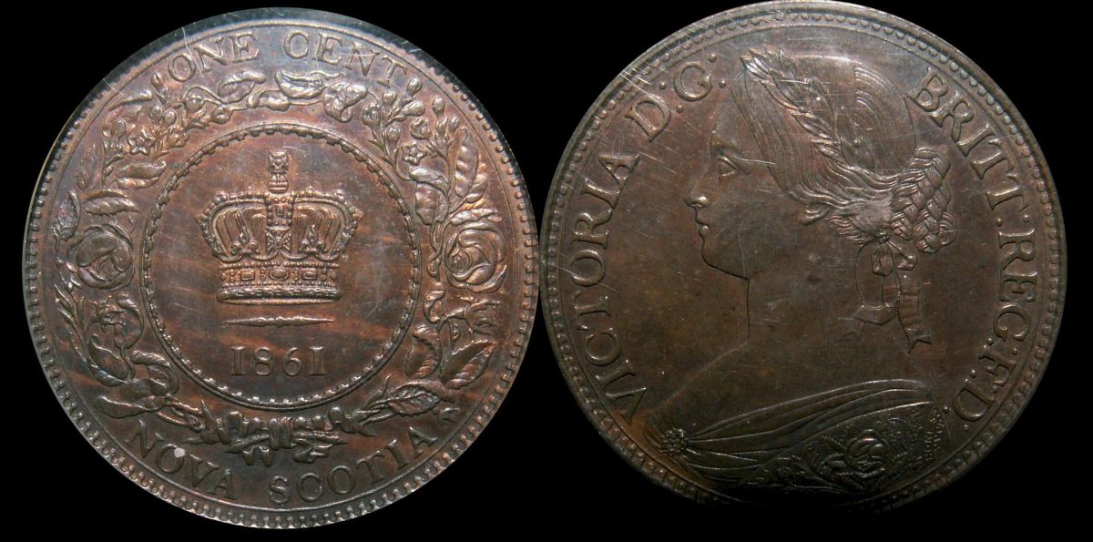 PATTERN Nova Scotia 1¢ 1861 PCGS SP-63RB NS-8a, Nice luster