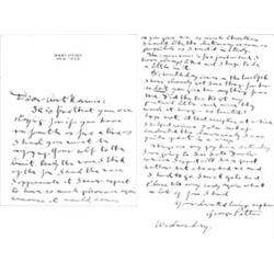 (1885 - 1945) "Old Blood and Guts" was one of the finest tank commanders in history, rolling his forces through Tunesia, Sicily, France and Germany until halted at the Rhine. Fine content, early A.L.S. "George Patton" on West Point letterhead, West Point, [n.d., ca 1910], to his "Aunt Nannie". In part: "…I hope you can come up here Sunday and if you you can don't forget my book for I have a lot of new thoughts to put in it…it will soon be filled - I am thinking lots. If you really want to spend money on me you can get me a couple of books, one a dictionary of battles…and Letters on Applied Tactics by Griepenkerl…I would like the dictionary as soon as possible…The course now is fine, just what I have always liked and I hope to do a little in it. B's [his future wife, Beatrice] birthday comes on the twelfth…" Very good condition.