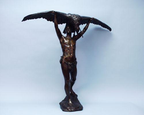 PAUL AICHLE - turn of the century German school. "Ganymedes". A well cast brown patinated bronze figure of a semi-nude youth with an eagle over his head. On naturalistic base. Signed and with Berlin Foundry mark. 40" high. Reference: Benezit, volume 1, pa