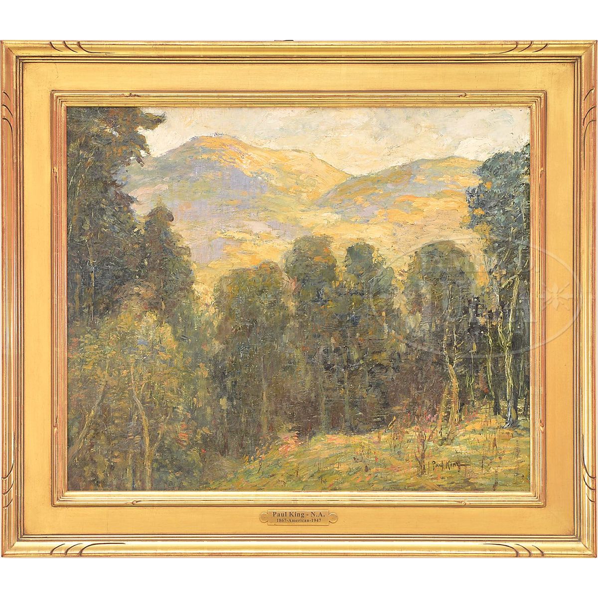 Oil on canvas Housed in a fine carved gilt wood modern frame Signed lower right "Paul King" SIZE: 25" x 30". Overall: 32-3/4" x 37-3/4". CONDITION: Lined, very good. 9-29516