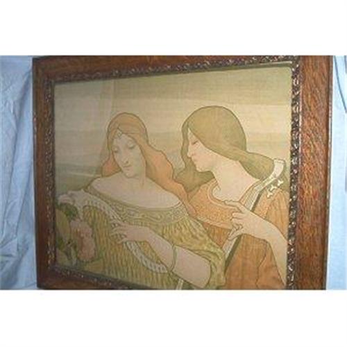 Measures 17 1/2 BY 21 3/4. (the wood frame measures approximately 2 inches and I have since been told that the print may have been cropped in order to fit into the frame. As the item came to me the way it is, I cannot verify that fact; however since the framing was done by a professional for a local art group, I doubt that it was cropped. This copy is framed in what appears to be a high quality oak finish. Purchased several years ago at quality art auction. The art is in beautiful subtle hues. The printed description on the back describes it as a 1901 picture of Sarah Bernhardt(please see note at beginning of this description ) -Decorative panel number 61 from the author's collection.(also referred to as "Panneaux Decoratifs". I believe that this is a limited edition. I have also been able to find more information on various lithos done in the past. First of all this is NOT one of the more recent copies that are now currently onsale in various venues. Apparently Sarah Bernhardt was one of his subjects. There are several lithos out there of this subject in different characters. All of them done in the 1898 to 1901 time frame. For example, his work "FEMME DE PROFIL was Printed upon heavy woven paper as ...
