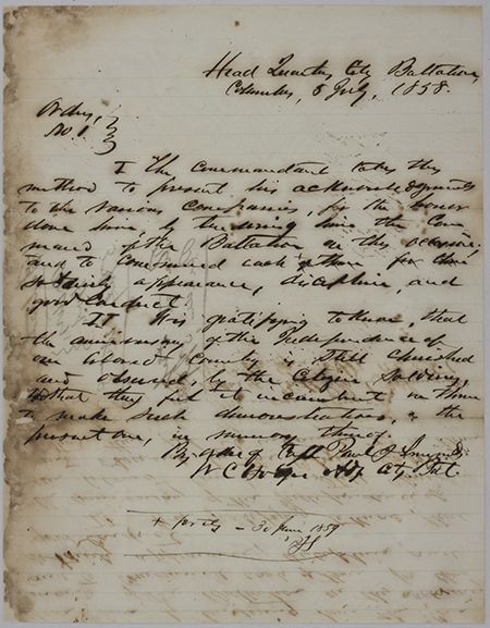 Semmes' Fourth of July praise for the militia: "It is gratifying to know that the anniversary of the Independence of our beloved country is still cherished and observed by the citizen soldiers…"