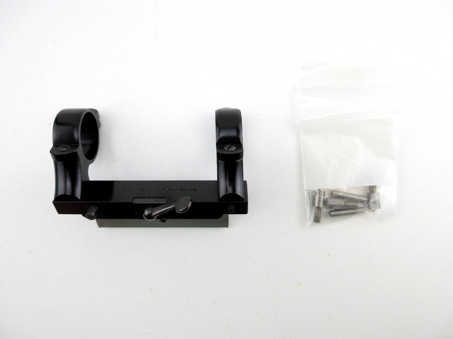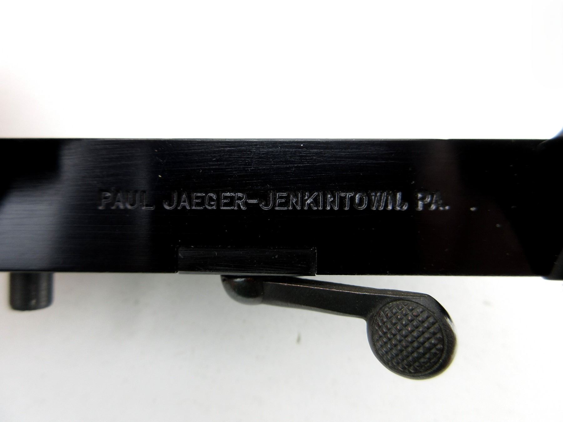 (1) REMOVEABLE 1" SIDE MOUNT SCOPE MOUNT, MARKED: "PAUL JAEGER - JENKINTOWN, PA.", BASE UN-DRILLED FOR MOUNTING, WITH GUIDE PINS. SEE PHOTOS.