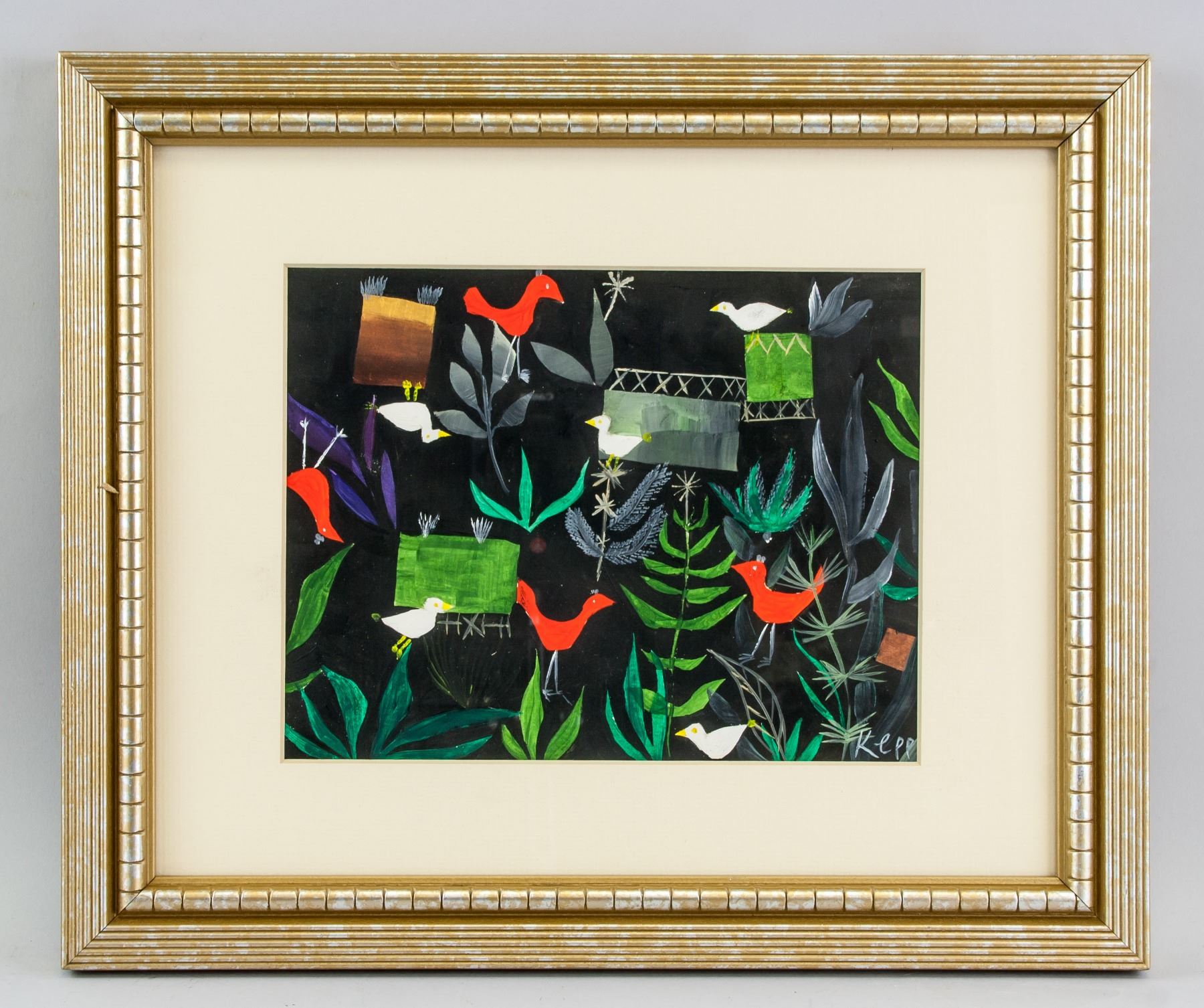 Gouache on paper. Featuring a floral scene on black background. Signed and attr. Paul Klee (Swiss, 1879-1940). 6.9 x 8.9 in. (17.5 x 22.5 cm). Known for his unique pictorial language and innovative teachings at the Bauhaus, Paul Klee had far-reaching influence on 20th-century modernism. In an early attempt to master color, he associated himself with the group Der Blaue Reiter (The Blue Rider), working closely with friend and future Bauhaus colleague Wassily Kandinsky. While engaged with artistic theory, Klee also admired children’s art, wanting his own style to be similarly unaffected. And his dream-like pictures made him popular with the Surrealists, though he never officially became one. Klee’s work can be humorous, his fantastic drawn subjects conveying a playful sense of absurdity, as with his famous Twittering Machine (1922). Later in his career, he began to build up thicker painted surfaces and simplify his compositions, replacing precise line-work with fewer, bolder forms. Klee’s art and lessons on color theory would greatly impact later generations of artists, including, significantly, the Abstract Expressionists and Color Field painters. PROVENANCE: Southern Ontario estate