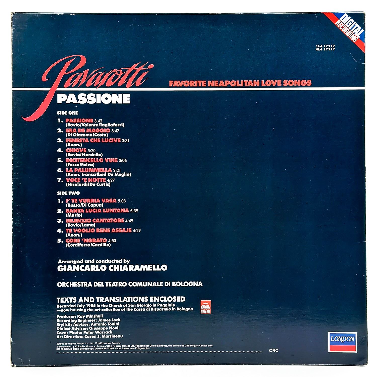 #9550 - VINYL LP RECORD ALBUM. CLASSICAL, ROMANTIC. FAVORITE NEAPOLITAN LOVE SONGS. DECCA RECORDS 544122 - 1L4 17117. RECORD ALBUM FROM PRIVATE COLLECTION OF CLASSICAL/OPERA RECORDS.