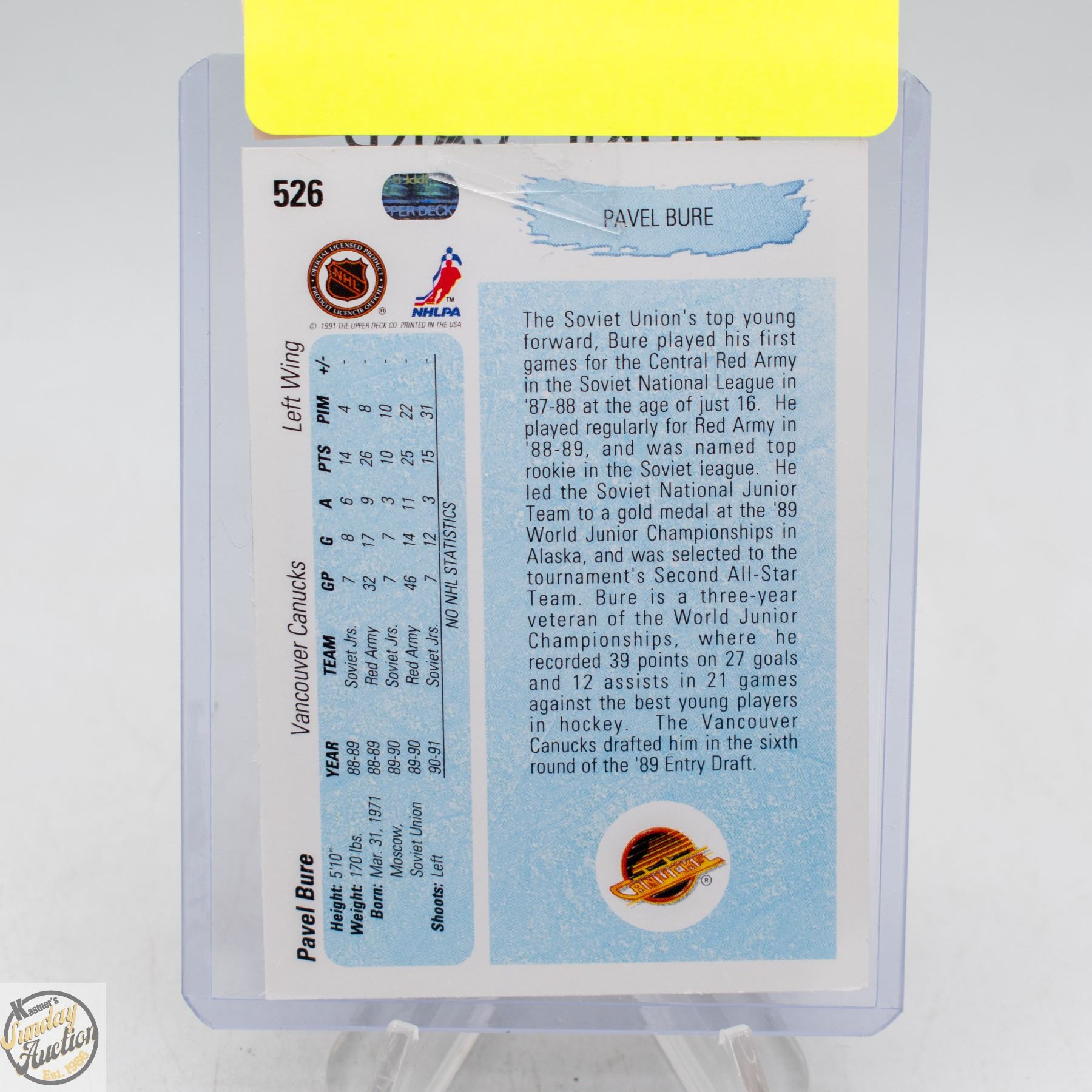 PAVEL BURE ROOKIE YOUNG GUNS UPPER DECK