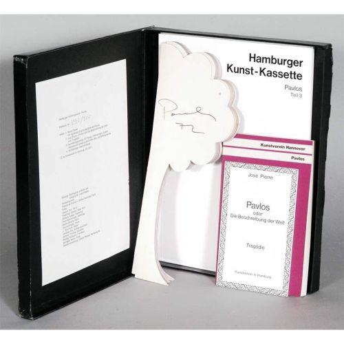 PAVLOS 12"x9" case with paper assemblage and pamphlets, #442/500, signed CONDITION REPORT: first few pages of assemblage are loose but still attached, otherwise excellent- no damage or restoration. PACKING AND SHIPPING: offered by Fairfield Auction to points within Continental U.S.A. and excluding insurance (which will be required and added) $30.