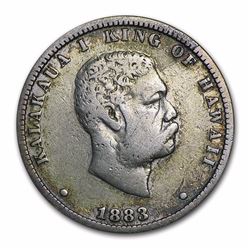 1883 Hawaii Quarter VF. This coin of the sovereign nation of Hawaii, bears on it's obverse the bust of King Kalakaua I. Although cleaned, this c...