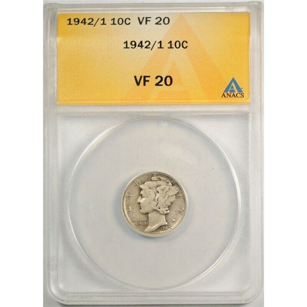 1942/41 10C Mercury Dime ANACS VF 20 VF Overdate109 - 1942/41 10C Mercury Dime ANACS VF 20 VF Overdate