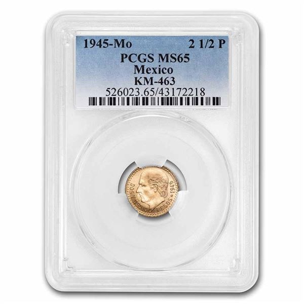 1945 Mexico Gold 2 1/2 Pesos MS-65 PCGS