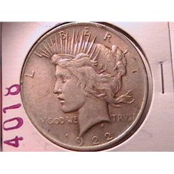 1922 SILVER PEACE DOLLAR VF-3050 - 1922 SILVER PEACE DOLLAR VF-30