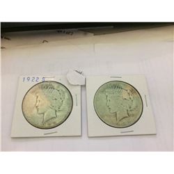 TWO PEACE SILVER DOLLARS, 1924, 1922-S