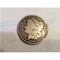 1881-CC MORGAN SILVER DOLLAR, VG258 - 1881-CC MORGAN SILVER DOLLAR, VG