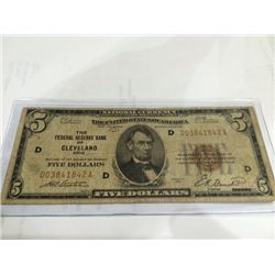 1929 $5 Federal Reserve Bank of Cleveland National Currency