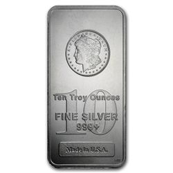 10 OZ .999 PURE SILVER BAR W/MORGAN DOLLAR IMPRINT