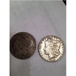 2 MORGAN SILVER DOLLARS, 1901 & 1902
