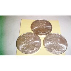 THREE .999 PURE SILVER ONE TROY OZ AMERICAN EAGLES