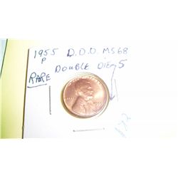 SCARCE 1955-P DOUBLE DIE OBVERSE LINCOLN CENT, MS-68.HAS SOME DOUBLE DIE FOR SURE.NEEDS TO BE GRADED TO SEE HOW THE RATE IT