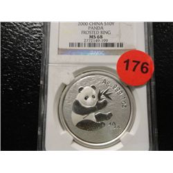 2010 $10Y 1 OZ PURE SILVER CHINESE PANDA FROSTED RING NGC MS-68