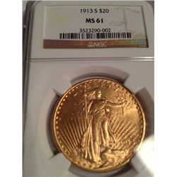 1913-S NGC MS-61 $20 ST GAUDENS GOLD COIN