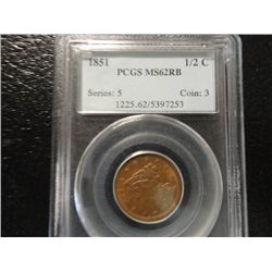 1851 PCGS MS-62 BRAIDED HAIR HALF CENT