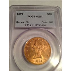 1894 NGC MS-61 $10 GOLD LIBERTY