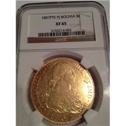 1807 PTS GOLD SPANISH BOLIVIA 8 ESCUDO COI(DOUBLOON), NGC XF-45