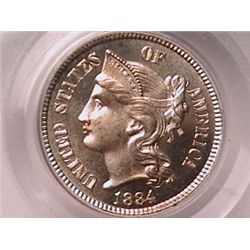 1884 Three Cent Nickel Gem Pf65 Cameo PCGS. A coin of incredible beauty with the deep mirrored fields and cameo devices! This is a rare date. Less tha