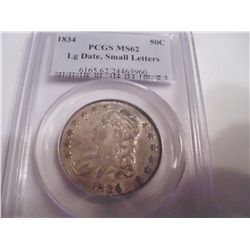 1834 CAPPED BUST HALF DOLLAR LG DATE SML LETTERS MS-62 PCGS