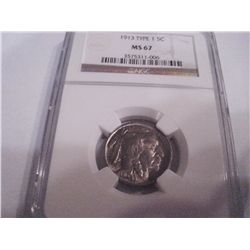 1913 NGC MS-67 TYPE 1 INDIAN HEAD NICKEL