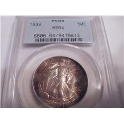 1939 WALKING LIBERTY HALF DOLLAR PCGS MS-64