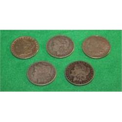 5 Mixed Dates 90% Silver Peace Dollars
