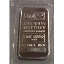 1 OZ .999 PURE SILVER JOHNSON MATTHEY BAR