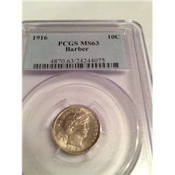 1916 Barber Dime PCGS MS-63