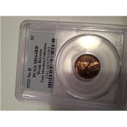 1922 No D Lincoln Wheat Penny PCGS MS-64 RB. Very Scarce. Est Value $$15000-$30,000