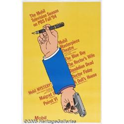 <B>PBS Masterpiece Theatre, Mobil Television Season, Fall 1994 (1994)</B></I> Bus Shelter Poster (30" X 46"). Mobil Television Season, Fall 1994: Masterpiece Theatre and Mystery, PBS Mobil Masterpiece/Mystery, 1994, Rolled. Design is by Seymour Chwast, co-founder (with Milton Glaser) of the famed Push Pin Studio, a fountainhead of modern advertising design and poster creation. New York born Chwast is regarded as one of America's leading illustrators. His work has been honored by exhibitions at such institutions as the Louvre in Paris and New York's Museum of Modern Art. Fine/Very FIne condition.