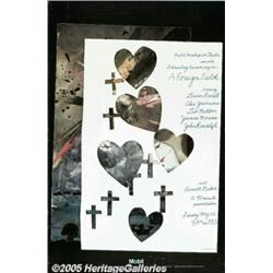 <B>PBS Masterpiece Theatre, Piece of Cake, Foreign Field (1990)</B></I> (2) Bus Shelter Posters (30" X 46"). Piece of Cake, PBS Mobil Masterpiece/Mystery, Paul Davis design, 1990, Rolled, US, Portrait of WWII aviator, British fighter plane, Paul Davis illustration, Tom Burlinson, Neil Dudgeon, Jack McKenzie, Ian Toynton. Foreign Field, A PBS Mobil Masterpiece/Mystery, 1994, Rolled, US, Battle scene with white rectangle superimposed with crosses and hearts cut out to show scene and credits, Lauren Bacall, Alec Guinness, Leo McKern, Jeanne Moreau, John Randolph. Poster designer Tony Palladino began his career studying with Mark Rothko and Robert Motherwell and went on to become a major practitioner of modern graphic design as well as a teacher on the subject at New York's famed School Of The Visual Arts. Very Fine condition. 2 items